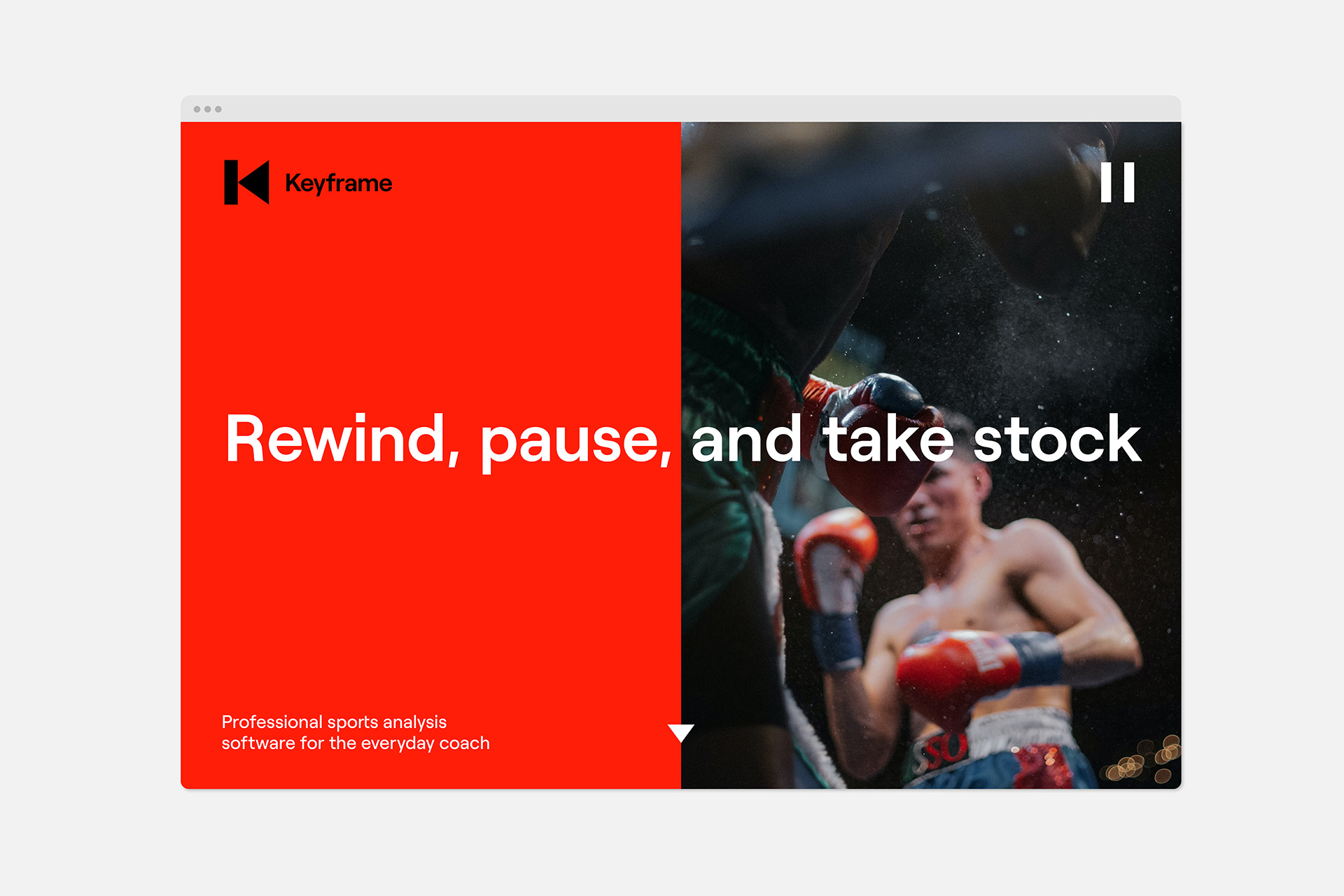 Keyframe Sports is a new video analysis software for sport. Currently, the majority of telestration software on the market is primarily aimed at professional sports. Keyframe needed to be positioned between the everyday user and varsity teams.